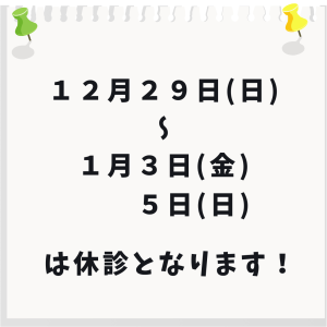12月29日(日)~1月3日(金)、1月5日(日)が休診となります。