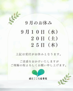 9月の休診日は